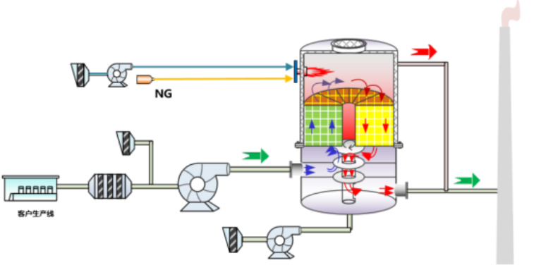 原理:将有机废气加热到760℃以上,使废气中的VOCs氧化分解成二氧化碳和水。